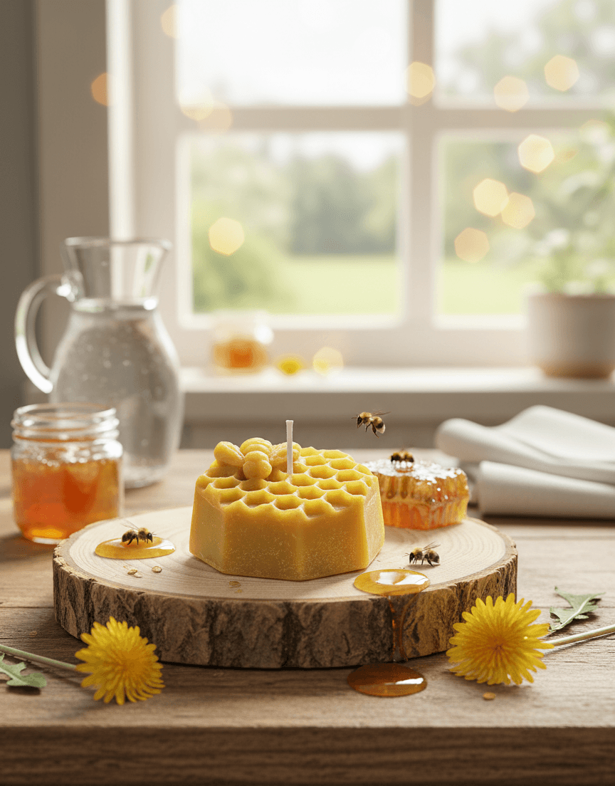 Bougie en forme de nid d’abeille en cire d’abeille : une création naturelle et chaleureuse, parfaite pour apporter une ambiance douce et écoresponsable.