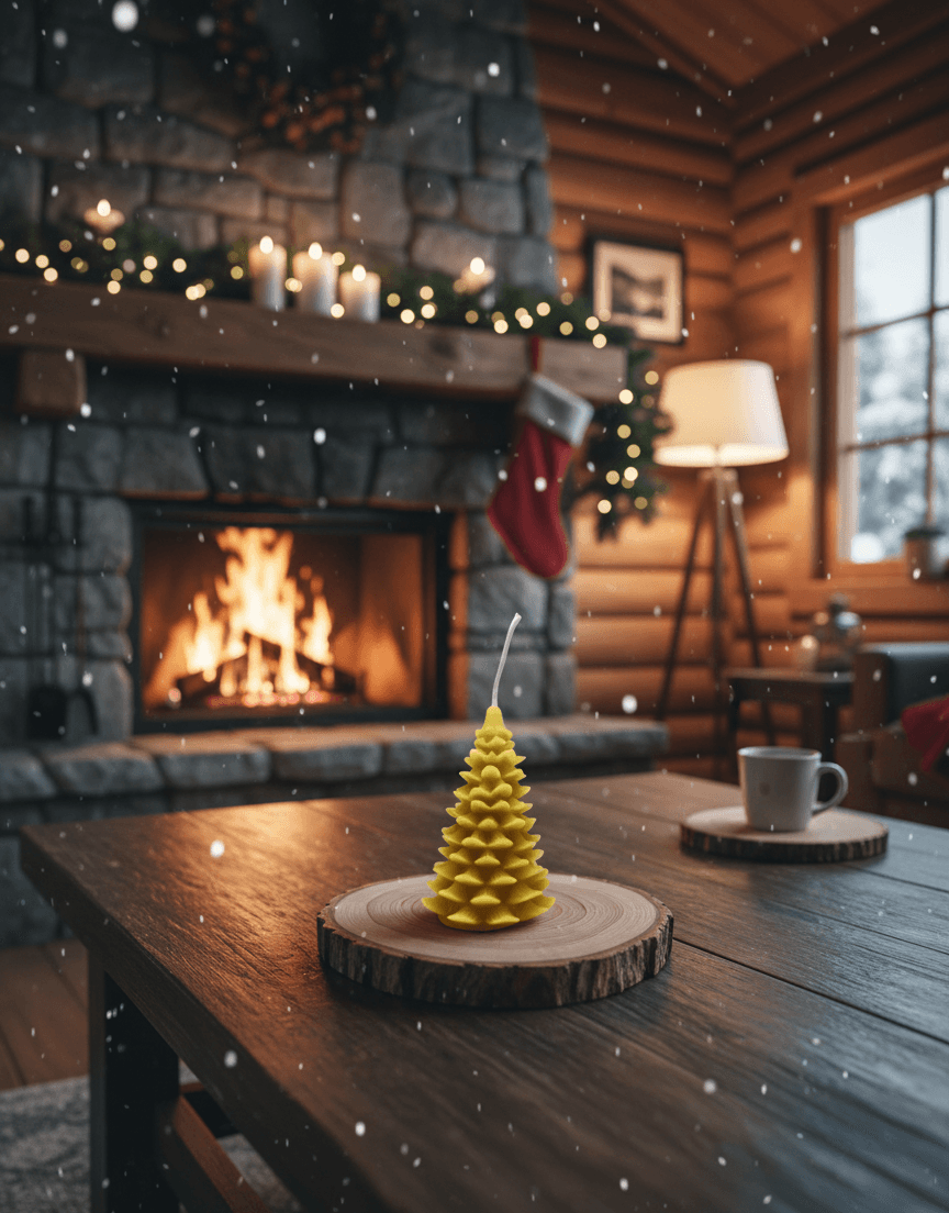 Bougie en forme de sapin en cire d’abeille : une création naturelle et festive, idéale pour ajouter une touche chaleureuse et écoresponsable.